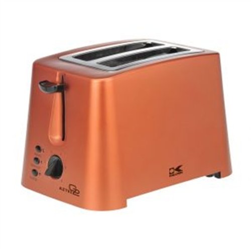 Combining a great design with quality performance, this two-slice Aztec Collection toaster by Kalorik provides an array of convenient features. Electronic controls for defrost, reheat, and cancel, each with an LED indicator light, make it easy to toast bagels, breads, or your favorite waffles and pastries, right out of the freezer. The unit offers extra-wide slots with self-adjusting guides to ensure even toasting, as well as a simple-to-use shade selector with 6 adjustable browning settings to accommodate individual preferences. This toaster feature a satin copper coating which has been triple-processed for a refined finish and added durability. Features: Large size toaster Variable electronic browning control Mid cycle cancel function Automatic pop-up& automatic shut-off Self-centering guides Slide out crumb tray easy to clean Bread lift function Extra wide slots for bagels and English muffins Indicator light Multi function (Defrost, Bagel, Cancel) Metallic spray finish Bun warmer & pliers : optional.